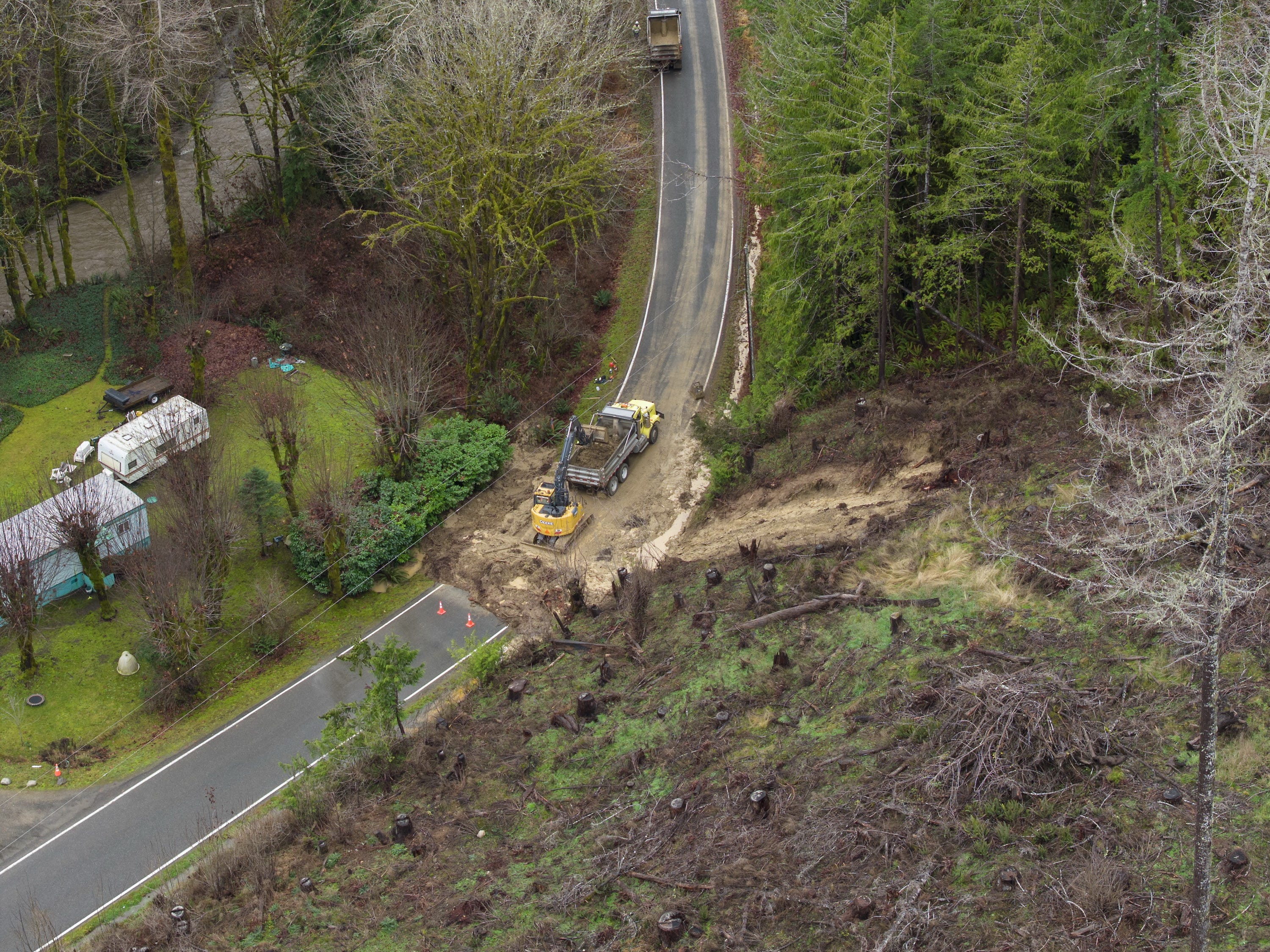 On the night of December 10, a landslide slid off the Aldwell clearcut and onto Little River Road. Photos from the scene show a significant slope failure directly above a public access corridor used year-round by locals and visitors.