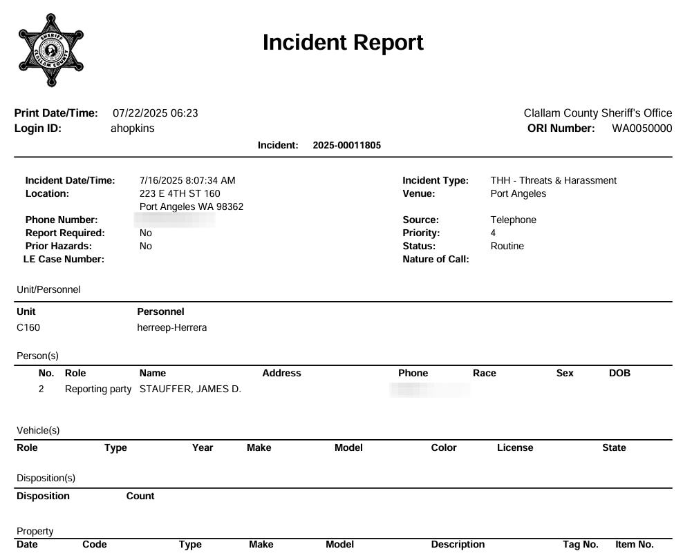 Meanwhile, the Clallam County Sheriff’s Office is already understaffed. Deputies are stretched thin, and private security has been hired just to maintain coverage at the courthouse. In that context, requesting law enforcement to step in because a commissioner was offended during public comment raises real questions about priorities, resources, and leadership.
