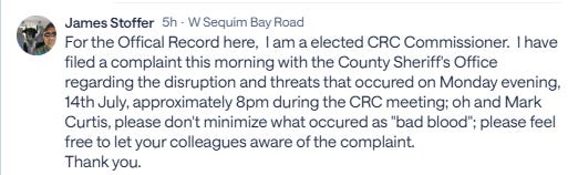 Commissioner Stoffer later took to Nextdoor to announce that he had filed a complaint with the Clallam County Sheriff’s Office.
