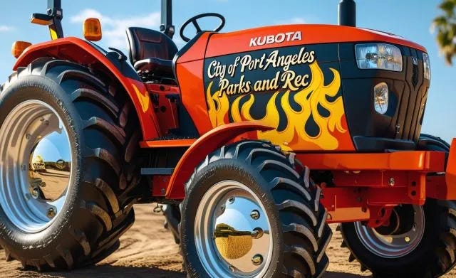 Port Angeles City Council candidate Marolee Smith Dvorak uncovered a peculiar line item in a recent Port Angeles City Council agenda: a $49,633.93 tractor replacement. The current tractor—a Kubota MX5000 from 2005—has just 1,610 hours on it. That’s less than 7 hours a month. Kubota expects 4,500–5,000 hours minimum lifespan. So why replace it?