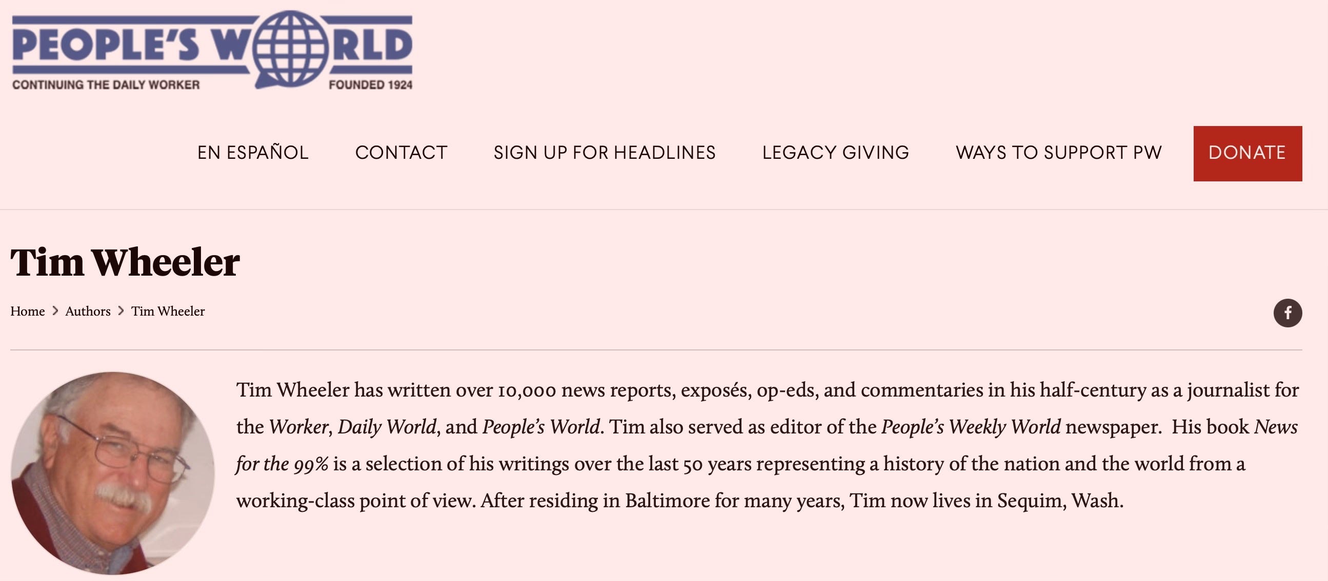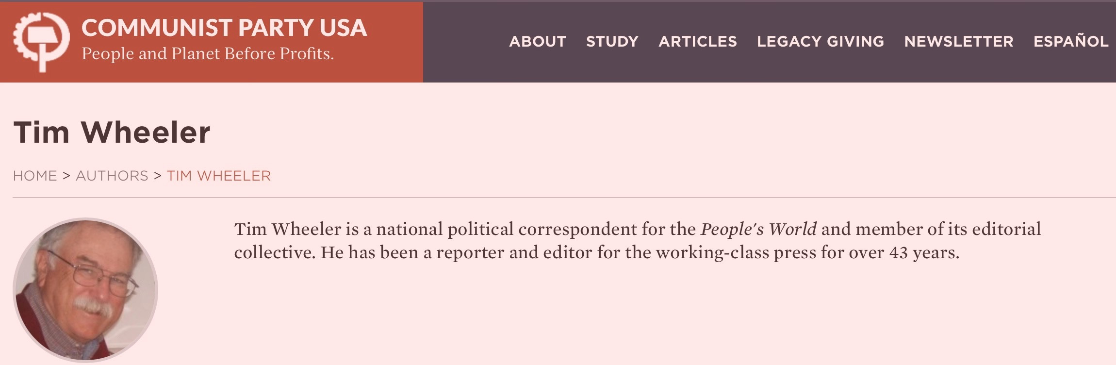 Tim Wheeler has followed a similar ideological path. He writes for Communist Party USA publications, including the party’s official site and People’s World, a newspaper with historic roots in the American communist movement.