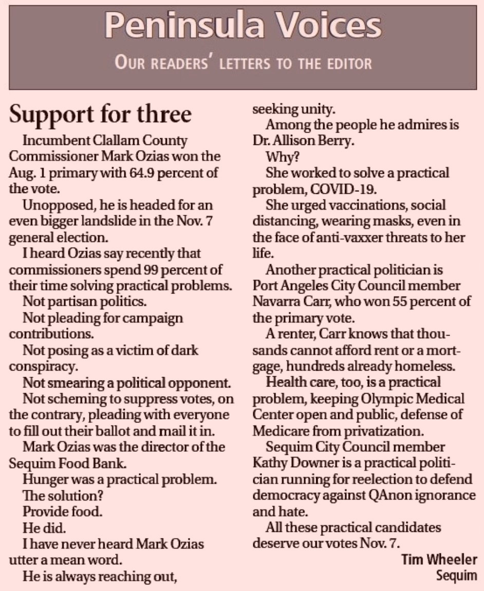 In addition, Wheeler serves as a trustee for the Clallam County Democratic Party.