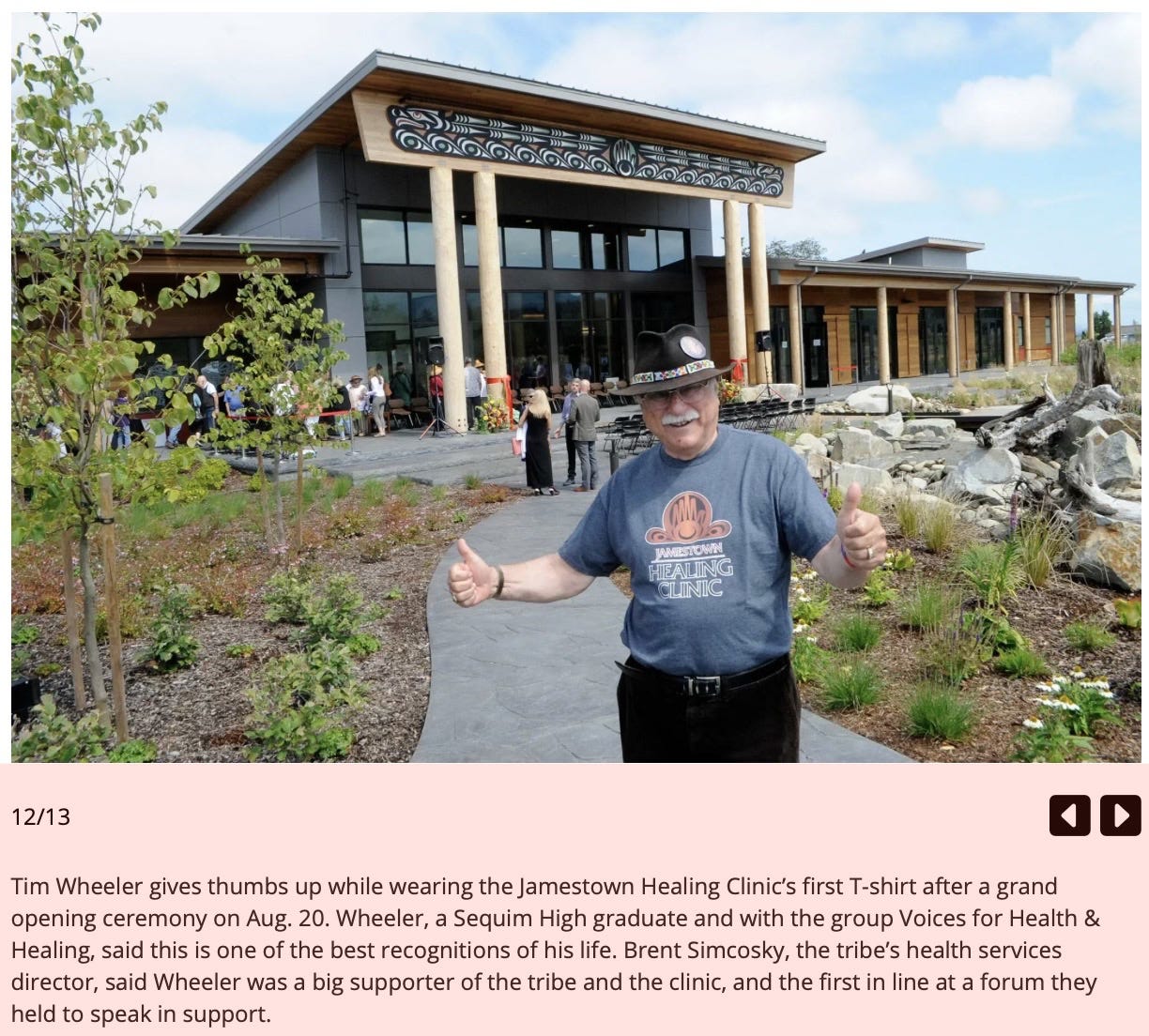 Wheeler has also played a role in advocacy related to the Jamestown S’Klallam Tribe’s MAT clinic, publicly supporting the project during community debates. In fact, he received the first “Healing Clinic” T-shirt issued during the campaign.