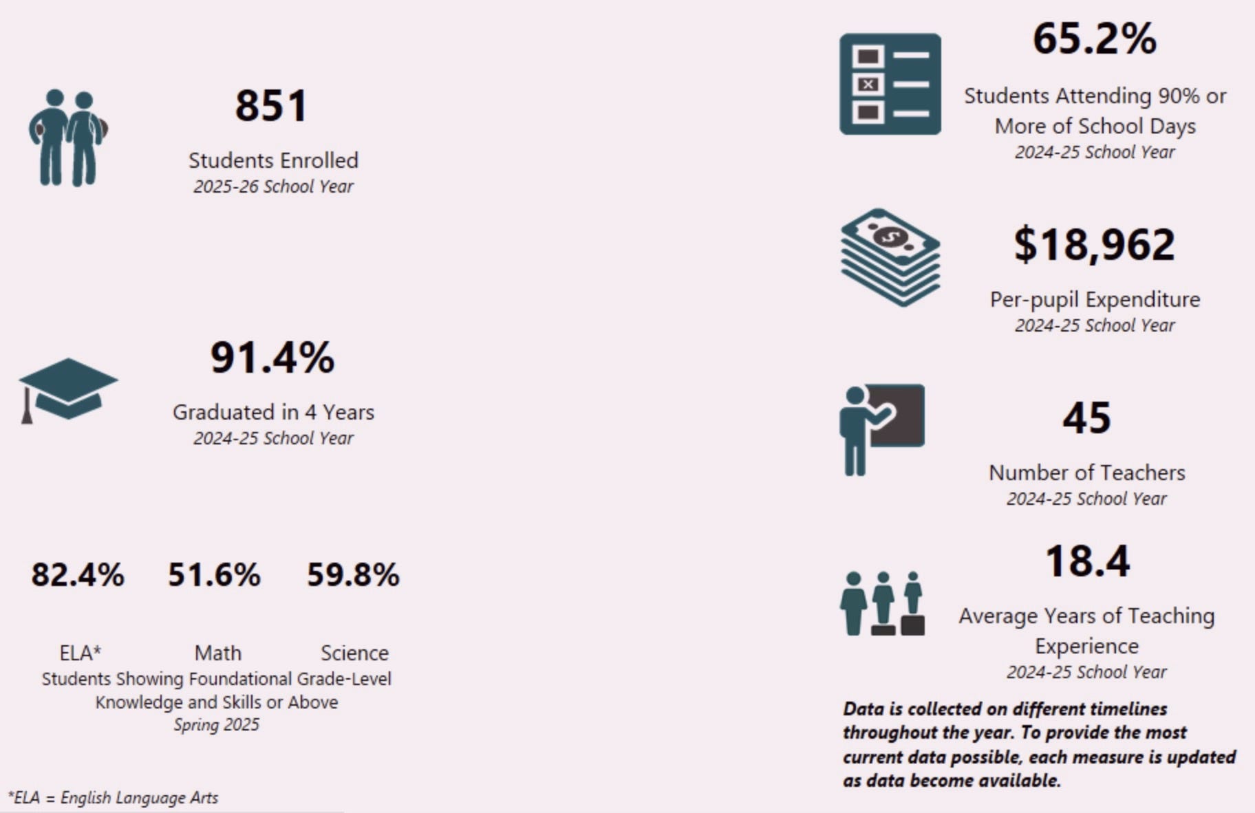 All of that would carry more weight if the high school itself weren’t struggling with fundamentals. Only about 65% of students are attending regularly. Math proficiency sits barely above half. Science lags behind. Those are not abstract problems—they are measurable, persistent, and directly tied to outcomes for kids.