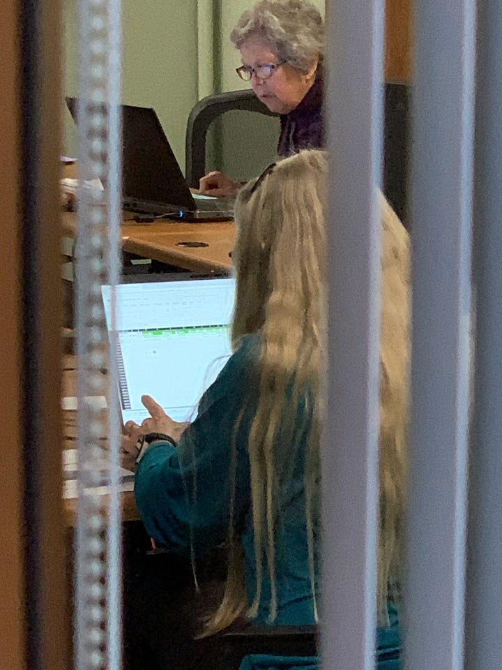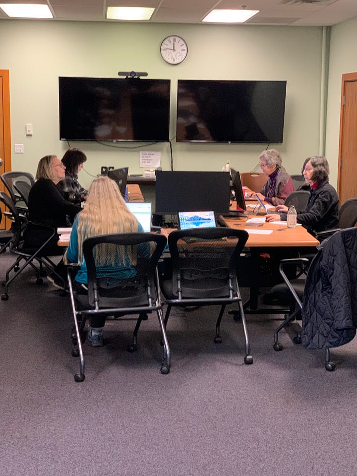 Volunteers from the League of Women Voters—an organization that supports and promotes Indivisible Sequim, which endorsed a candidate in the race—are processing ballots while observers remain outside the room.