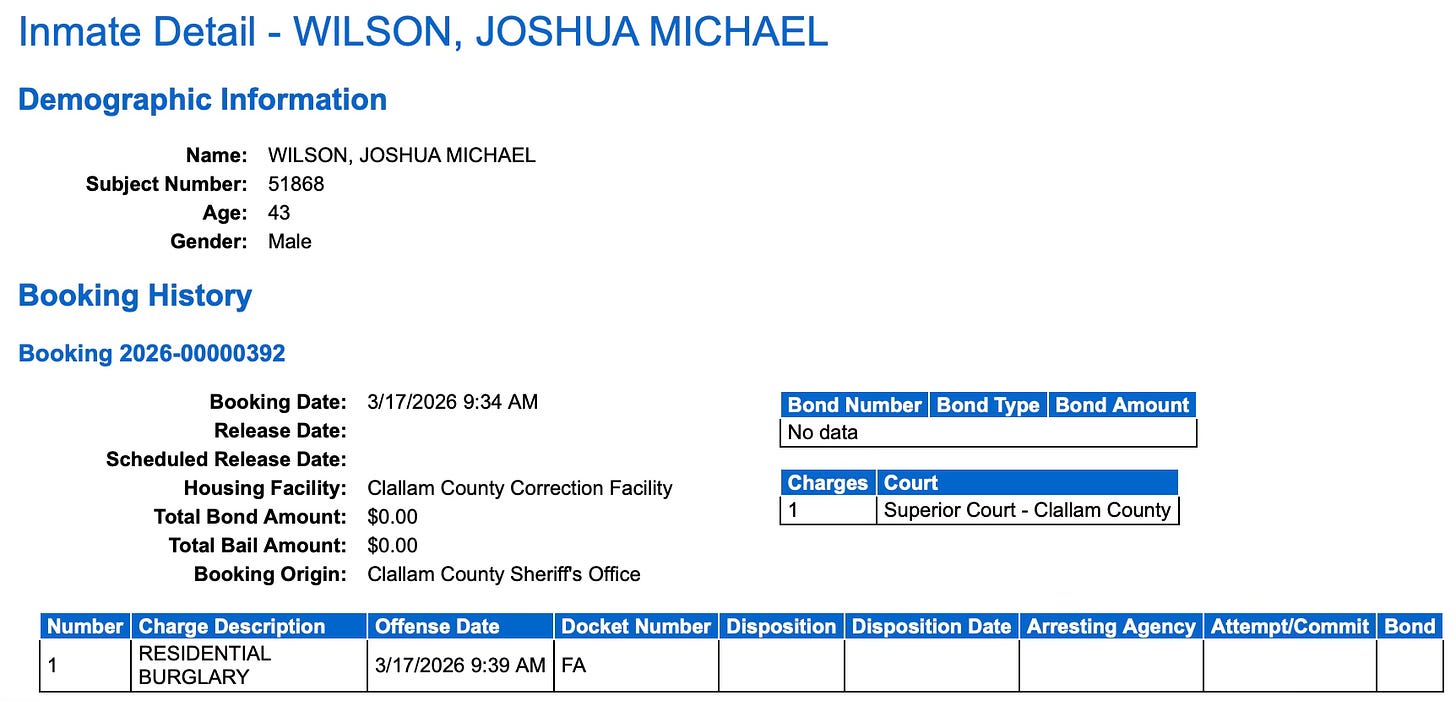 Joshua Wilson was arrested this week for residential burglary. If the name sounds familiar, it should.