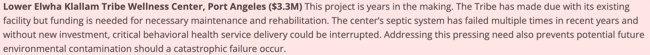 When State Senator Mike Chapman announced $3.3 million for the Lower Elwha Klallam Tribe Wellness Center, it sounded straightforward. Necessary repairs. Failing infrastructure. Preventing environmental damage.