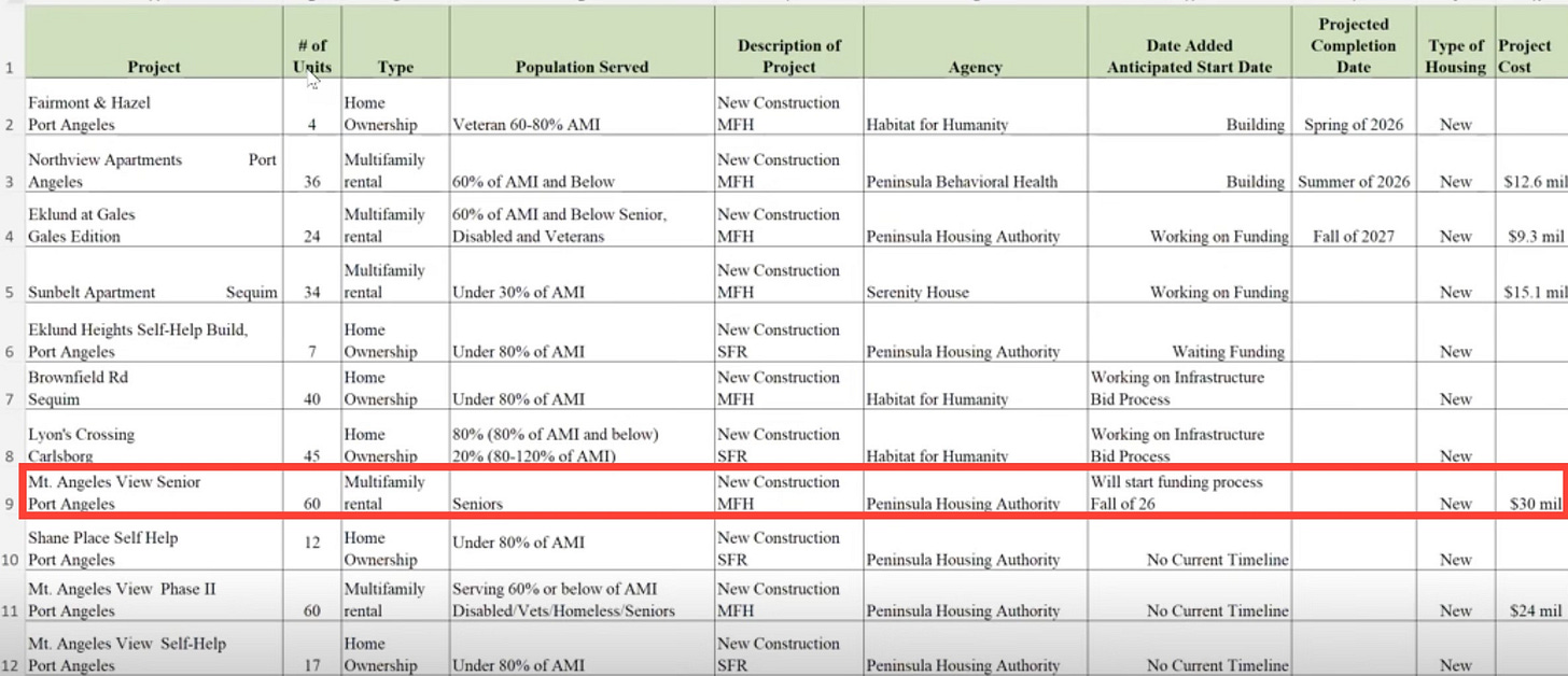 The County’s Housing Solutions Committee recently heard from the Peninsula Housing Authority about funding for new construction of Mt. Angeles View Phase II, a senior-housing project planned behind the Port Angeles Boys & Girls Club. The headline number is hard to ignore: 60 units for $30 million.