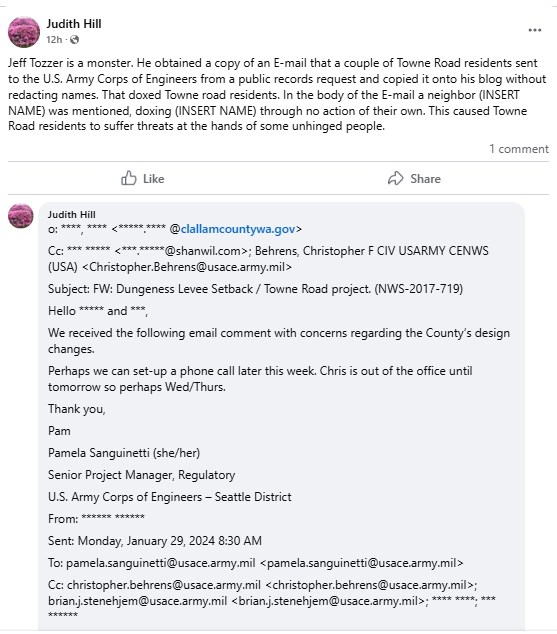 Given the past county response to the Towne Road family, I wrote to Commissioner Ozias on July 27, 2025, formally requesting an investigation into this harassment and doxxing. Below is the full text of our email exchange, which highlights the stark difference in how some concerns are handled compared to those enrolled in the Clallam Concierge Service: