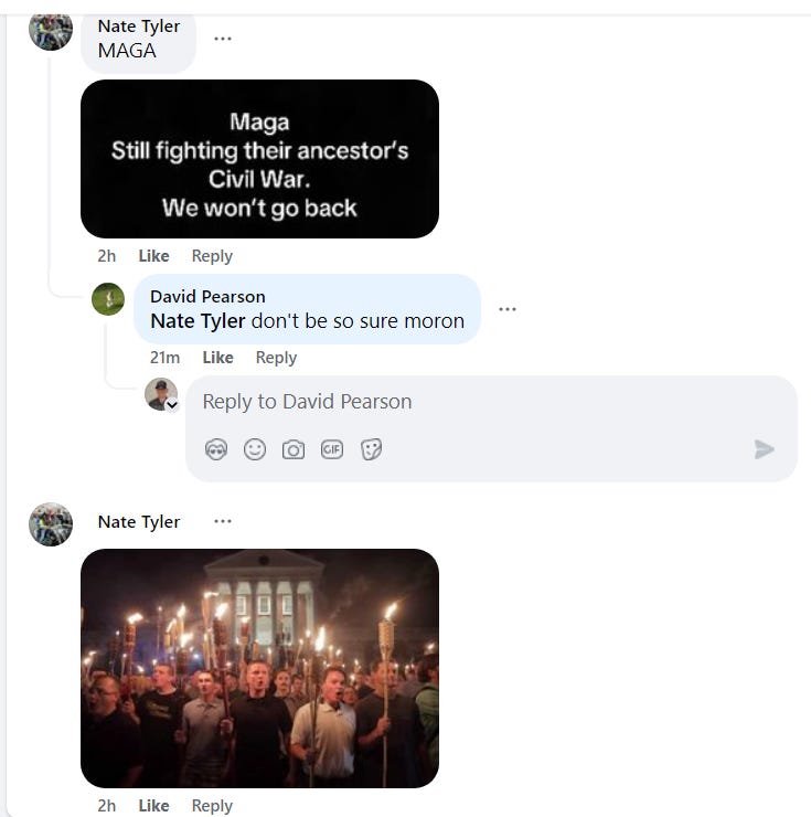 Nate Tyler has gone even further—posting directions to my house and making baseless claims that I’m affiliated with white supremacist groups..