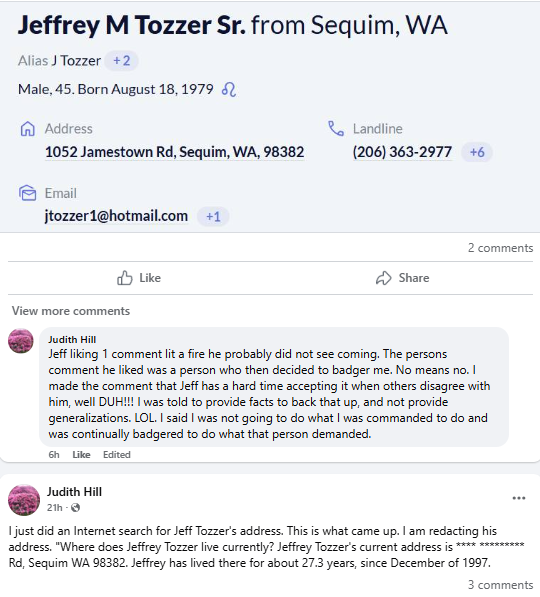 This appears to meet the definition of doxing: publicly sharing personally identifiable information without consent and with malicious intent. Posting a photo of someone’s home—especially when paired with hostile commentary—can easily be seen as intimidation or a veiled threat. When that’s followed by someone else posting directions and extremist accusations, it crosses a line.