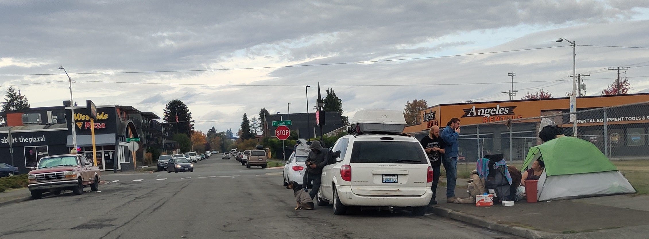 Photos taken three days ago show Keith still parked on Sixth Street near Goodwill. The sidewalk remains blocked by a tent and derelict vehicles.