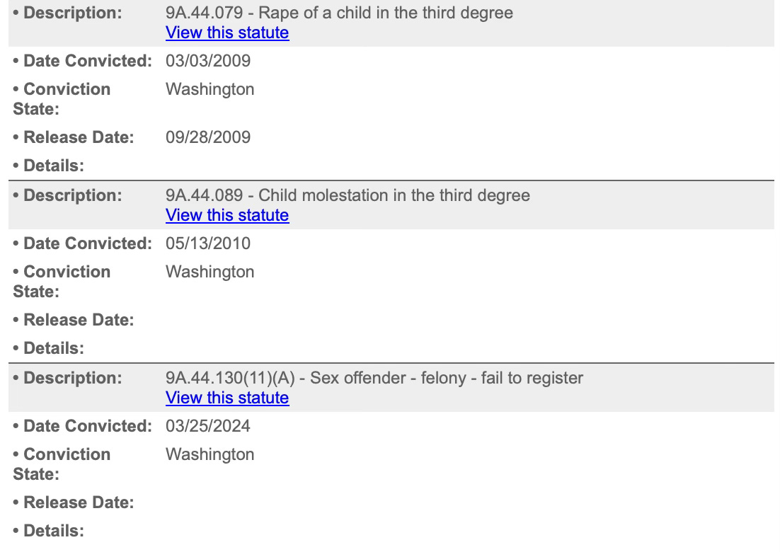2024: Convicted for failing to register as a sex offender
