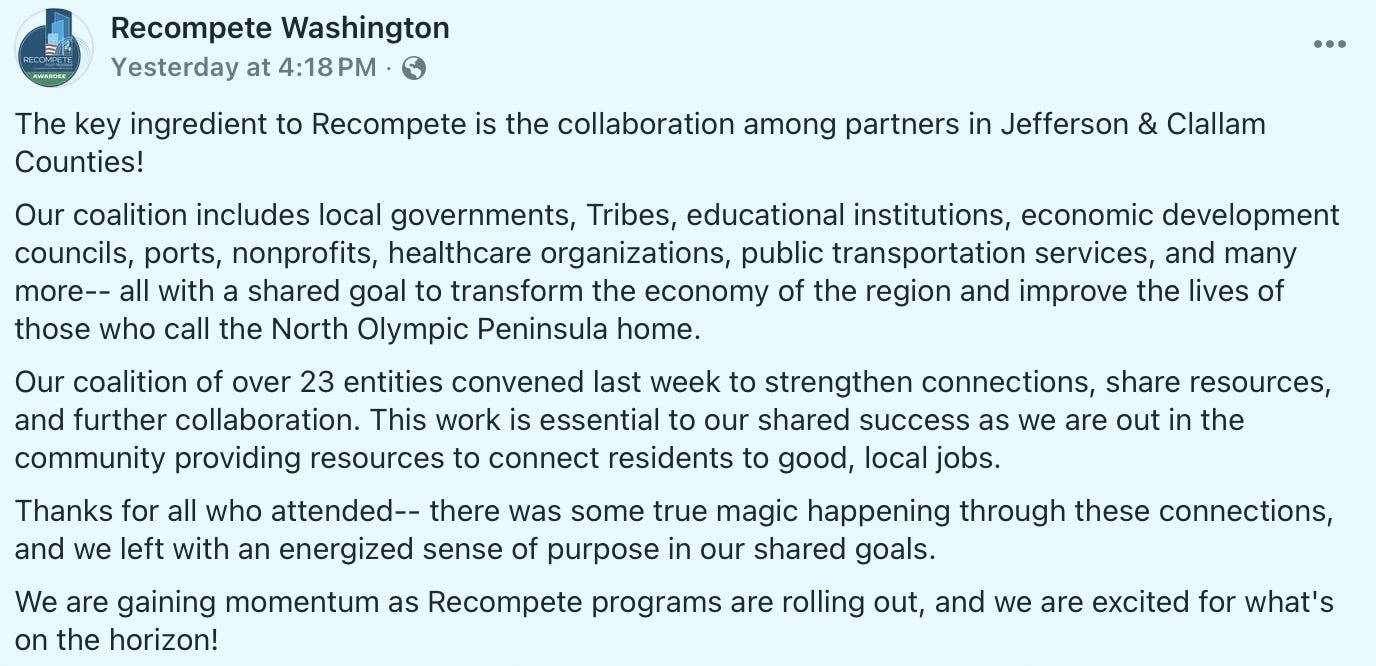 Recompete was sold as a once-in-a-generation economic reboot. Its social-media update reads like a press release written by a consultant.