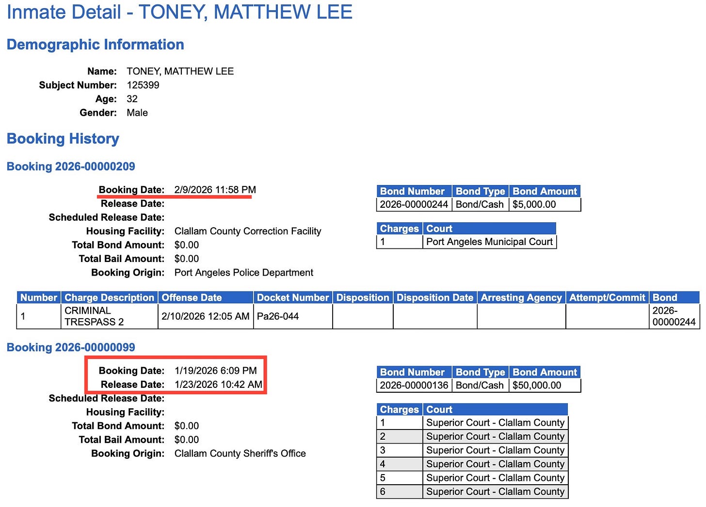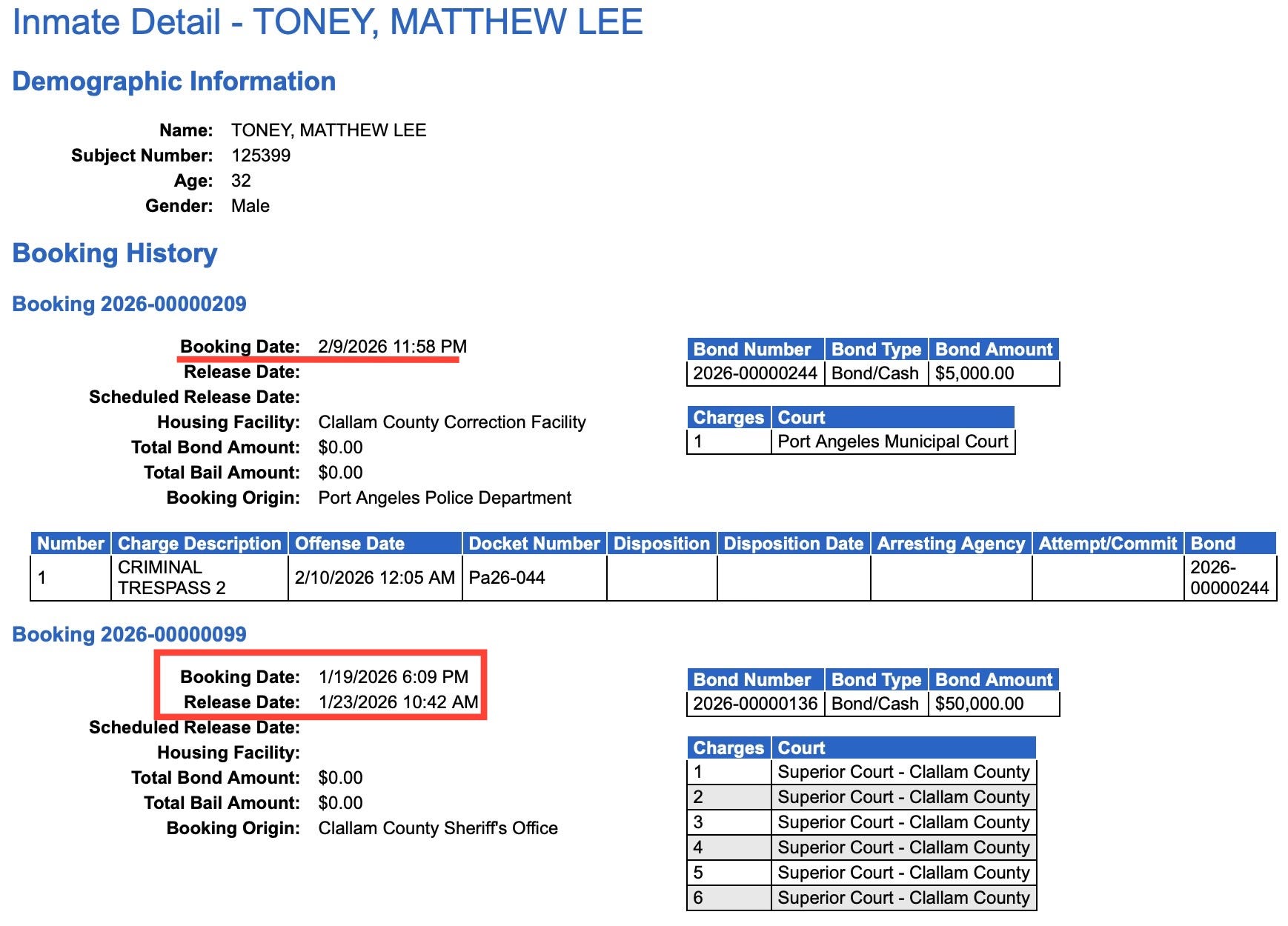 And this week—on Monday—he was booked again, this time for criminal trespass.