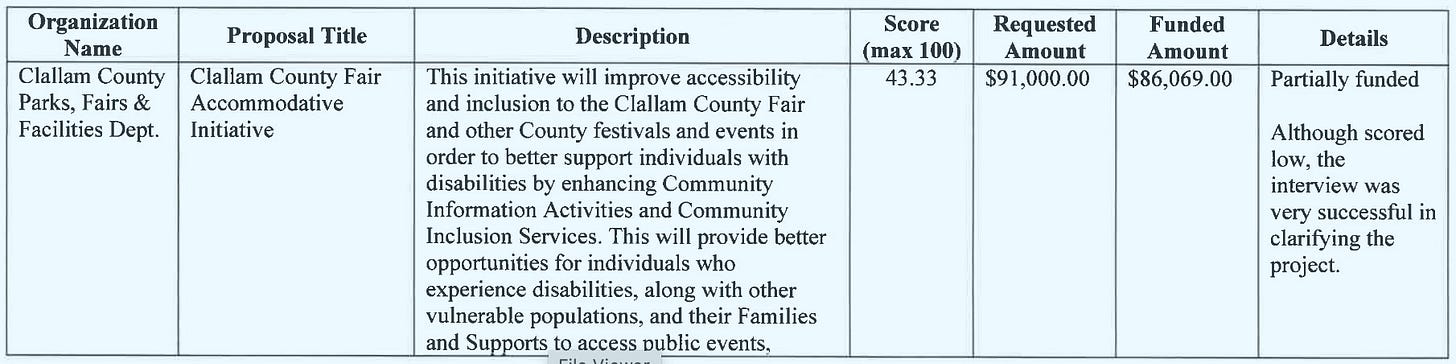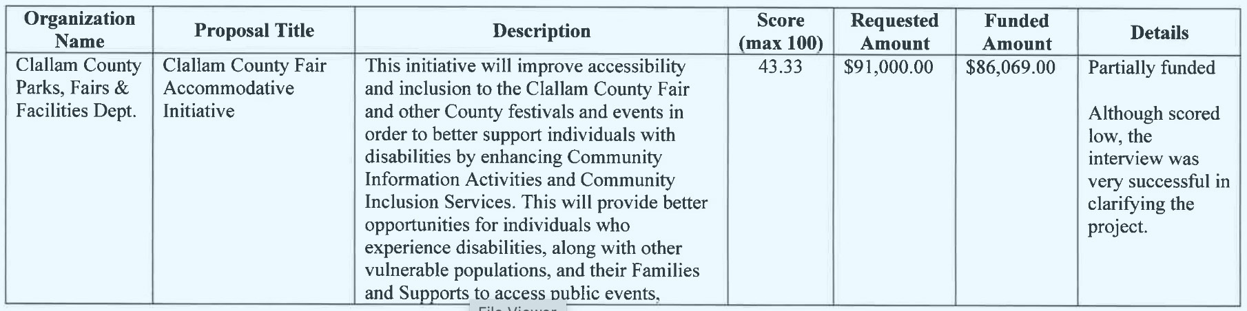 1. $86,069 to the Clallam County Fair for “Accessibility Improvements”