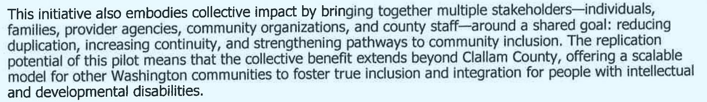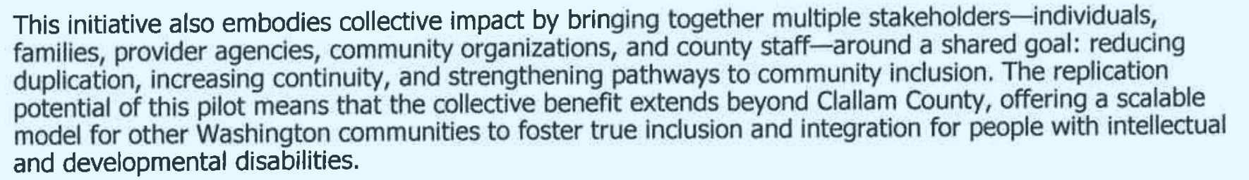 “Embodies collective impact… scalable model… strengthens pathways to community inclusion…”