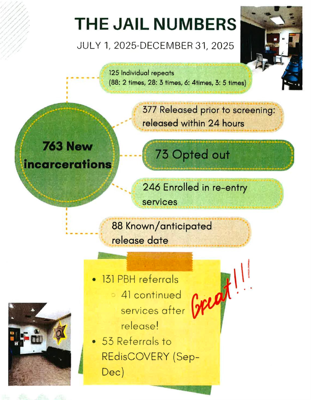 These repeat arrests were part of 763 total new incarcerations during that six-month window.