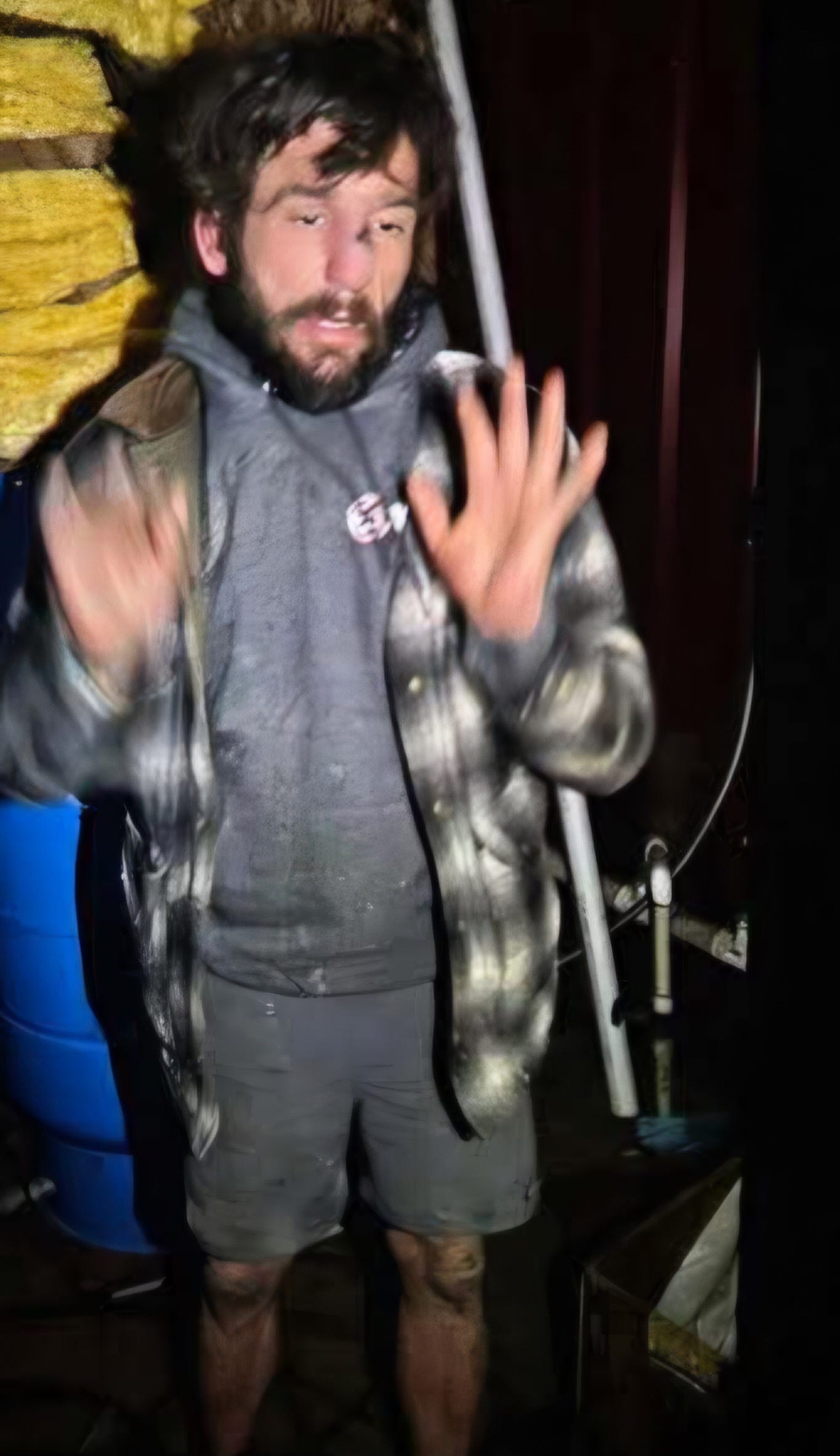 More sightings followed. He appeared at the AM/PM, was found sleeping at a snowboard manufacturing business, and reportedly attempted multiple break-ins at Olympic Disposal before being trespassed again. Surveillance footage was provided to the Sheriff’s Office. Throughout the day he allegedly threw trash and debris into Carlsborg Road and later entered the Old Mill Cafe before leaving when police failed to arrive in time.